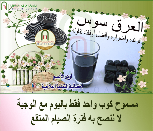 مشروب العرقسوس الجاهز الذي يباع طبعا ممنوع لاحتوائه على السكر، والمقصود العرقسوس المحضر بدون اضافة سكر، فهو مشروب لا يحوي كربوهيدرات مع ان طعمه حلو