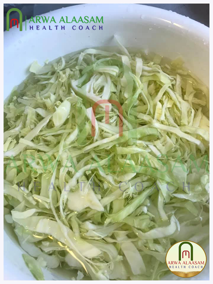 ٦- يضاف السائل الملحي على الخضار ويترك قليلا حتى يتشربه ونحدد اذا كان هناك حاجة لاضافة المزيد ..