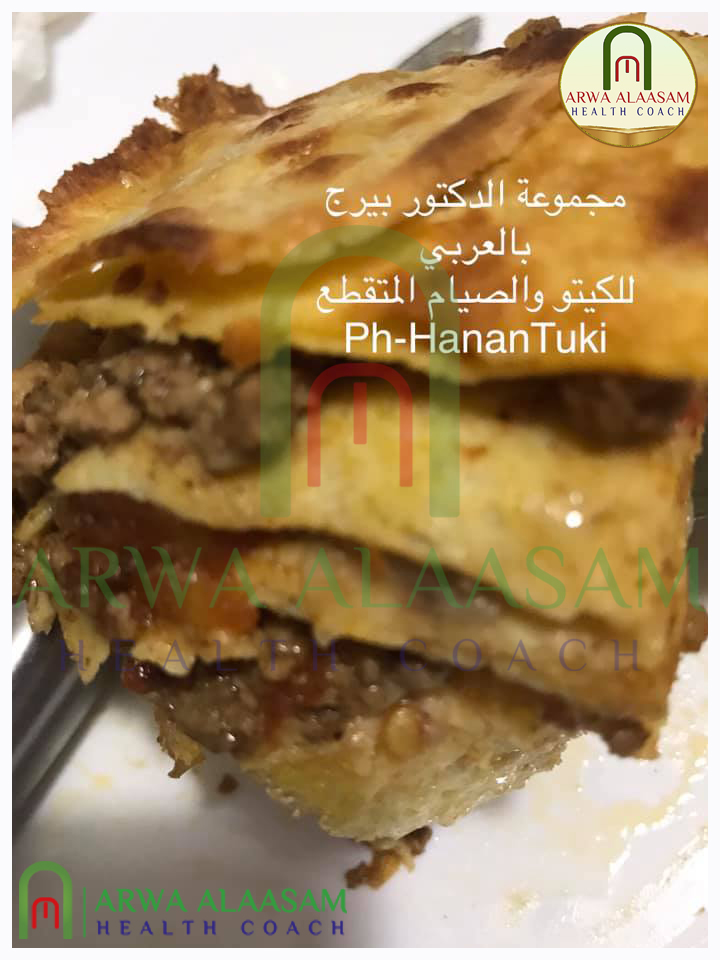 -ناخد قطع الرقاق ونسقيها بالمرق ثم تدهن بخليط السمنة وترص بالطبق ثم نضيف اللحمة المفرومة